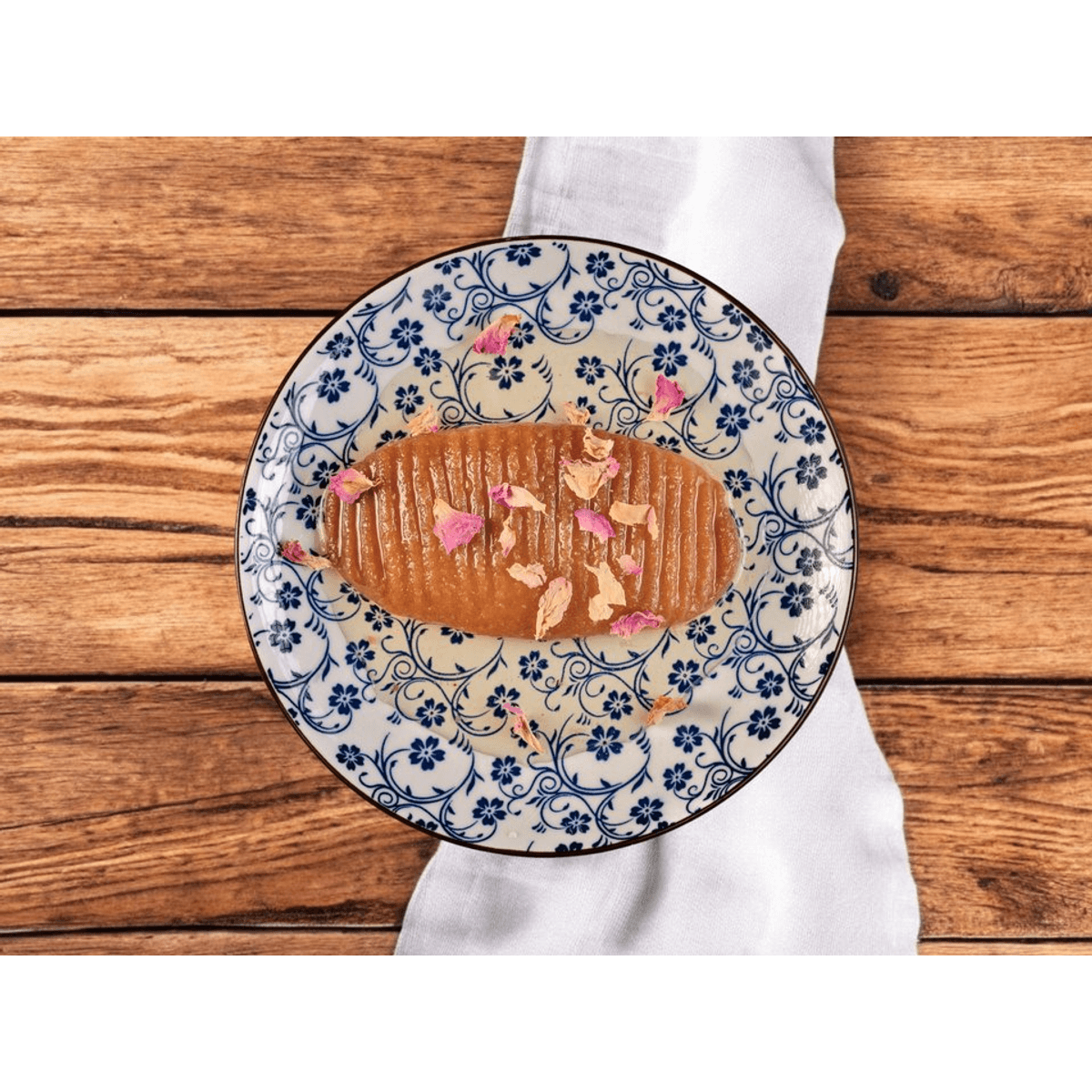 Босненска бисквитка, обилно окъпана в захарен сироп с ванилия и розова вода.