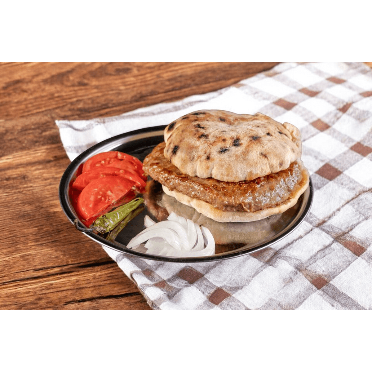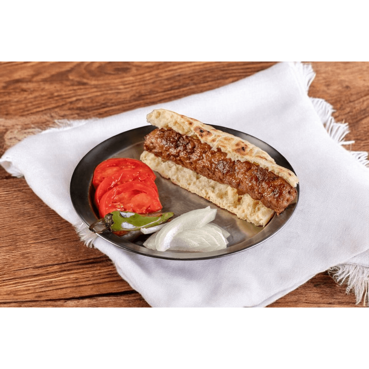 Съдържа един пикантен шиш чевап в половин босненска лепиня с домат, лук и люта чушка.