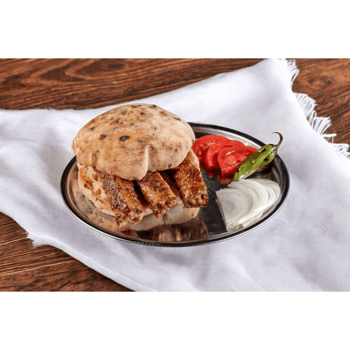 Съдържа три Шиш Чевапа, удобно настанени в разрязана босненска лепиня с домат, лук и люта чушка.