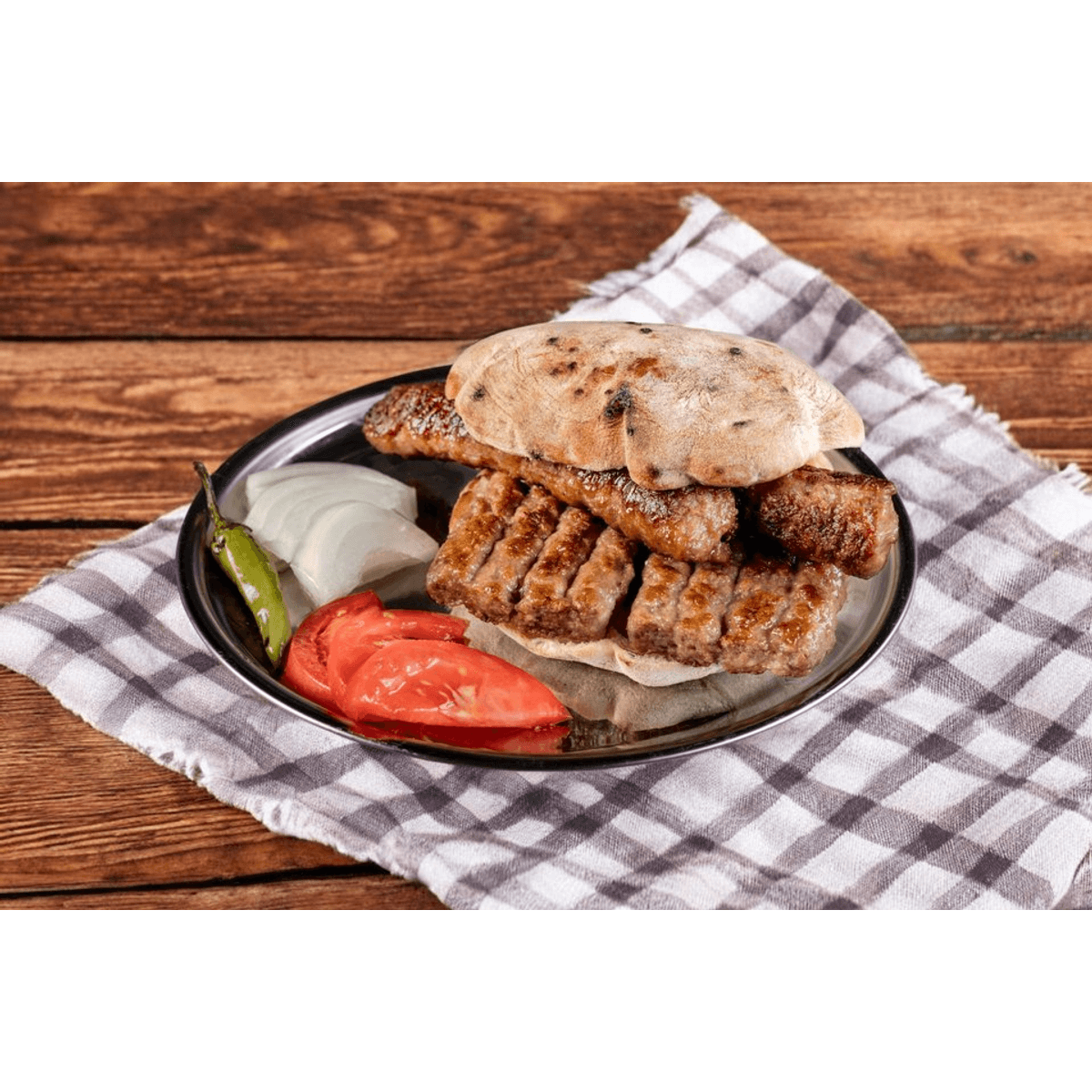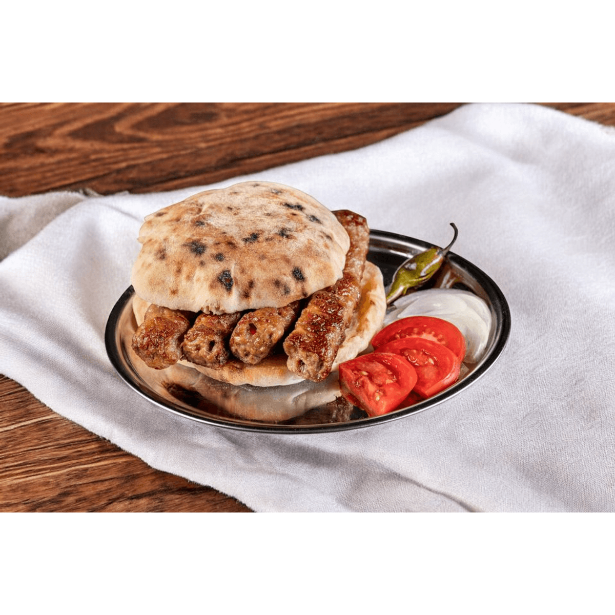 Съдържа два приятно пикантни Шиш Чевапа в босненска Лепиня с домат, лук и люта чушка.